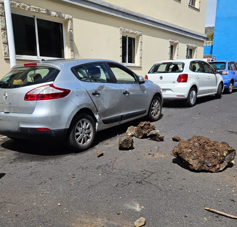 Un derrumbe en una vía de Tazacorte daña a varios vehículos