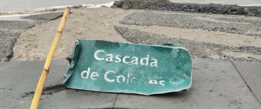 El cartel de la Cascada de Colores, arrastrado hasta la playa de Tazacorte