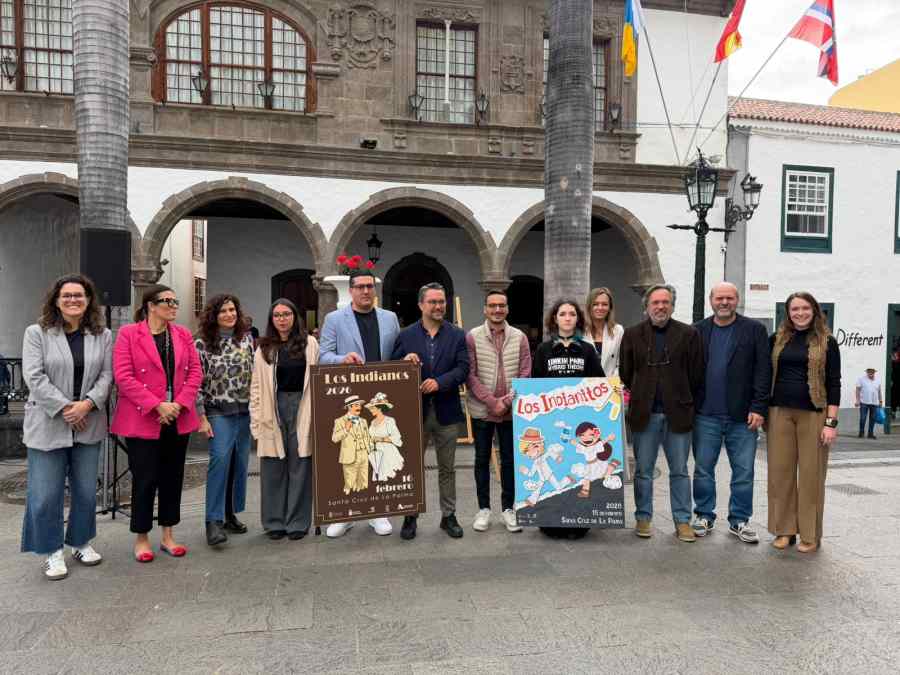 El Ayuntamiento de Santa Cruz de La Palma ha presentado este lunes el cartel oficial de Los Indianos y también de los Indianitos, así como un avance de la programación del Carnaval 2026, en la plaza de España de la capital, destacando el talento joven y la tradición de una de las fiestas más emblemáticas del municipio.
